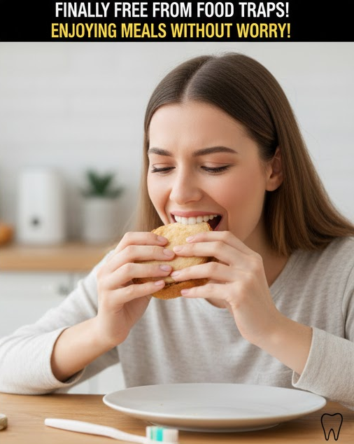 Food getting trapped is very common in the early stages because the sites are raw, open, and shaped like small craters. The good news? This risk steadily decreases as healing advances.